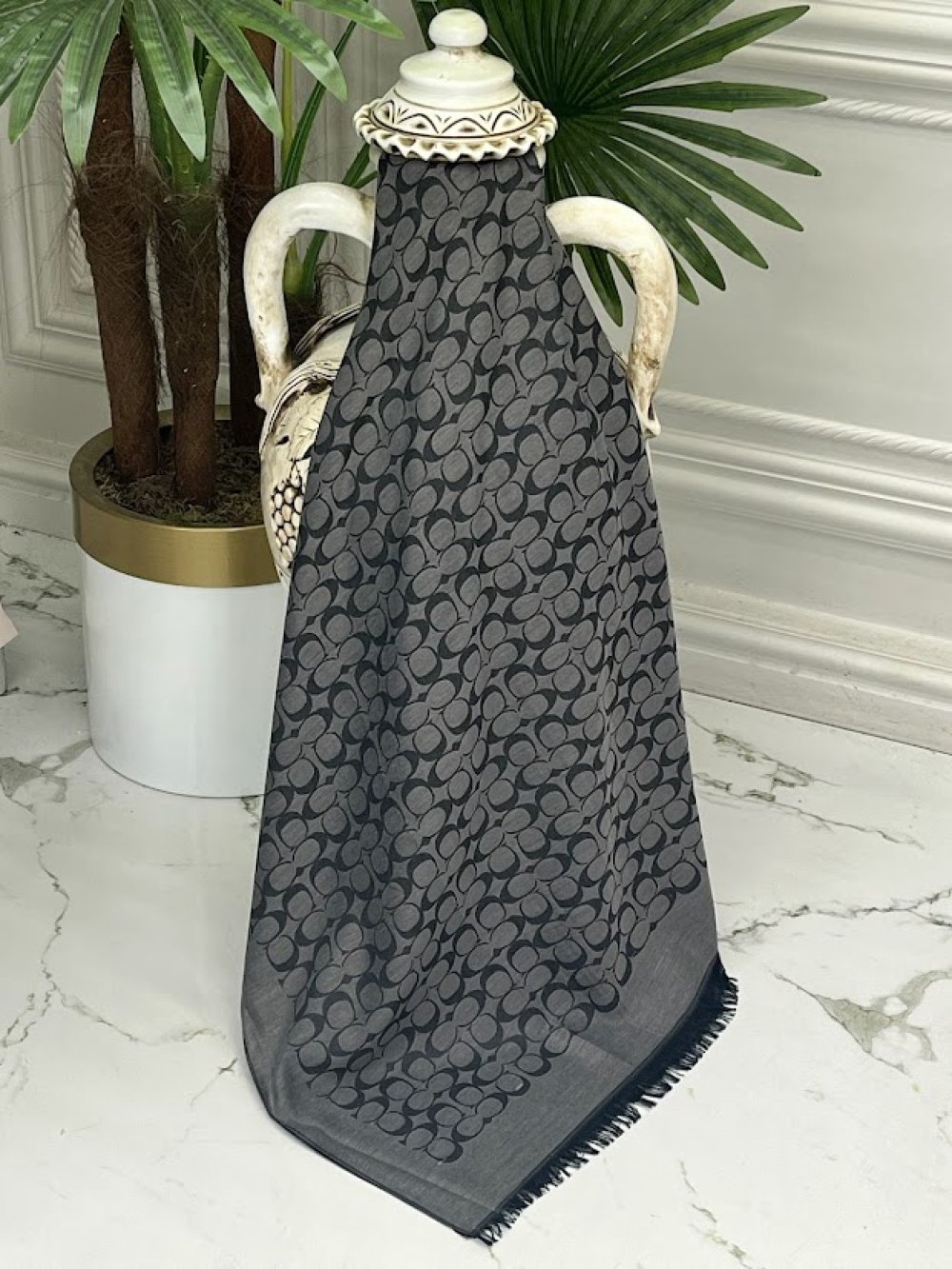 0033 Coach Yün İpek Şal Antrasit