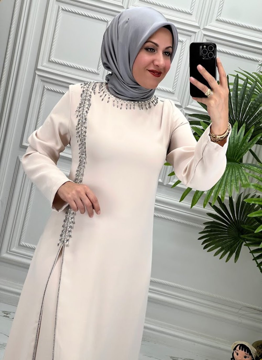 8829 Elbise Taş Rengi